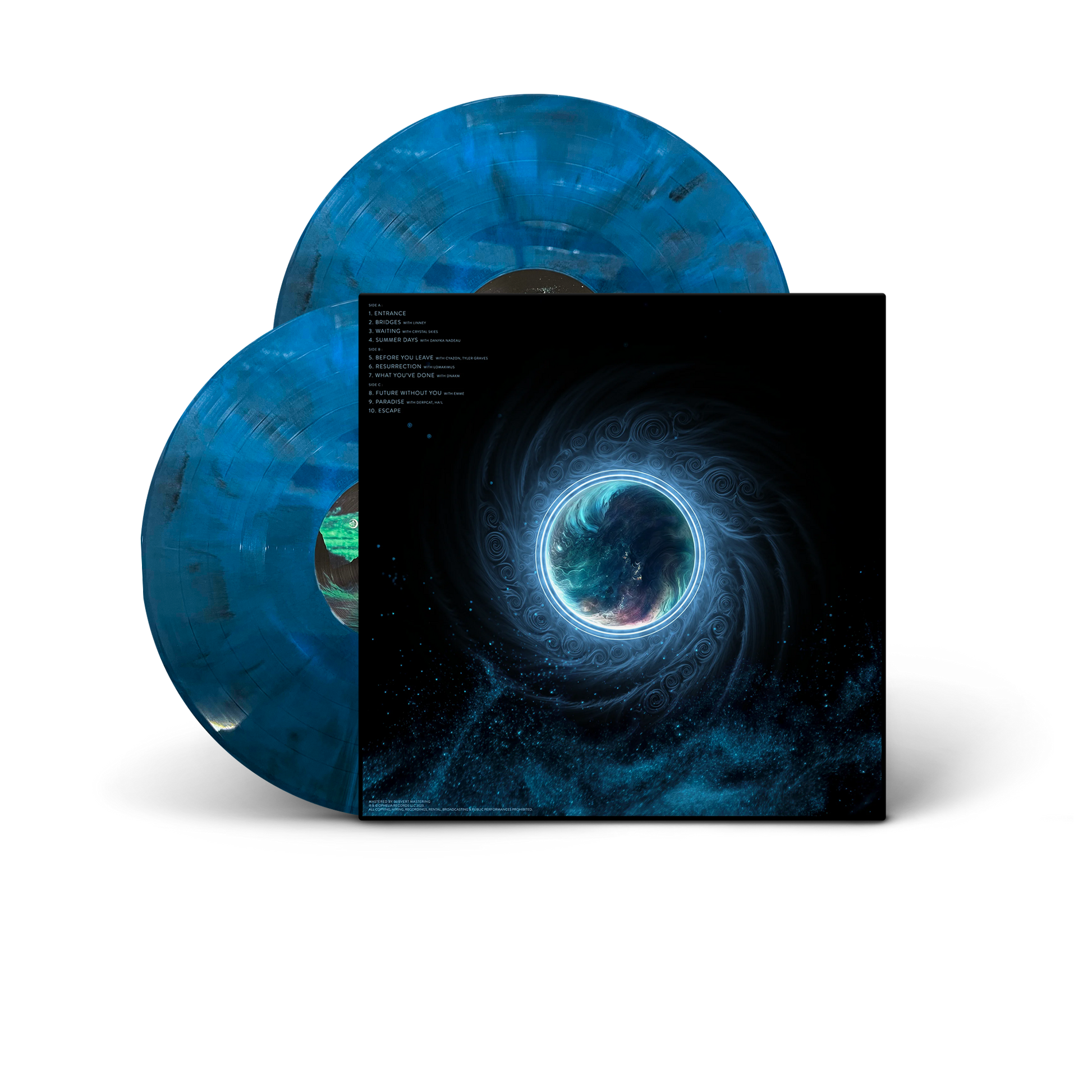 Bridges Between Double LP Vinyl designed by Au5 in galaxy blue color with black smoke. Bass producer and sound design wizard Au5 releases 'Bridges Between', his sixth and debut Ophelia album. The genre-spanning LP journeys through themes of connection, despair, hope and acceptance through standout vocal performances, innovative sound design and immediate classic melodies. 'Bridges Between' features dubstep, trance, progressive/electro house, speed house, future bass and midtempo with Au5's renowned production skills on full display. Ophelia fan favorites like Crystal Skies and Tyler Graves make appearances alongside a stacked lineup of fresh collaborators to round out yet another standout Au5 album. Vinyl mastering done by Bob Macc at 33 RPM.
