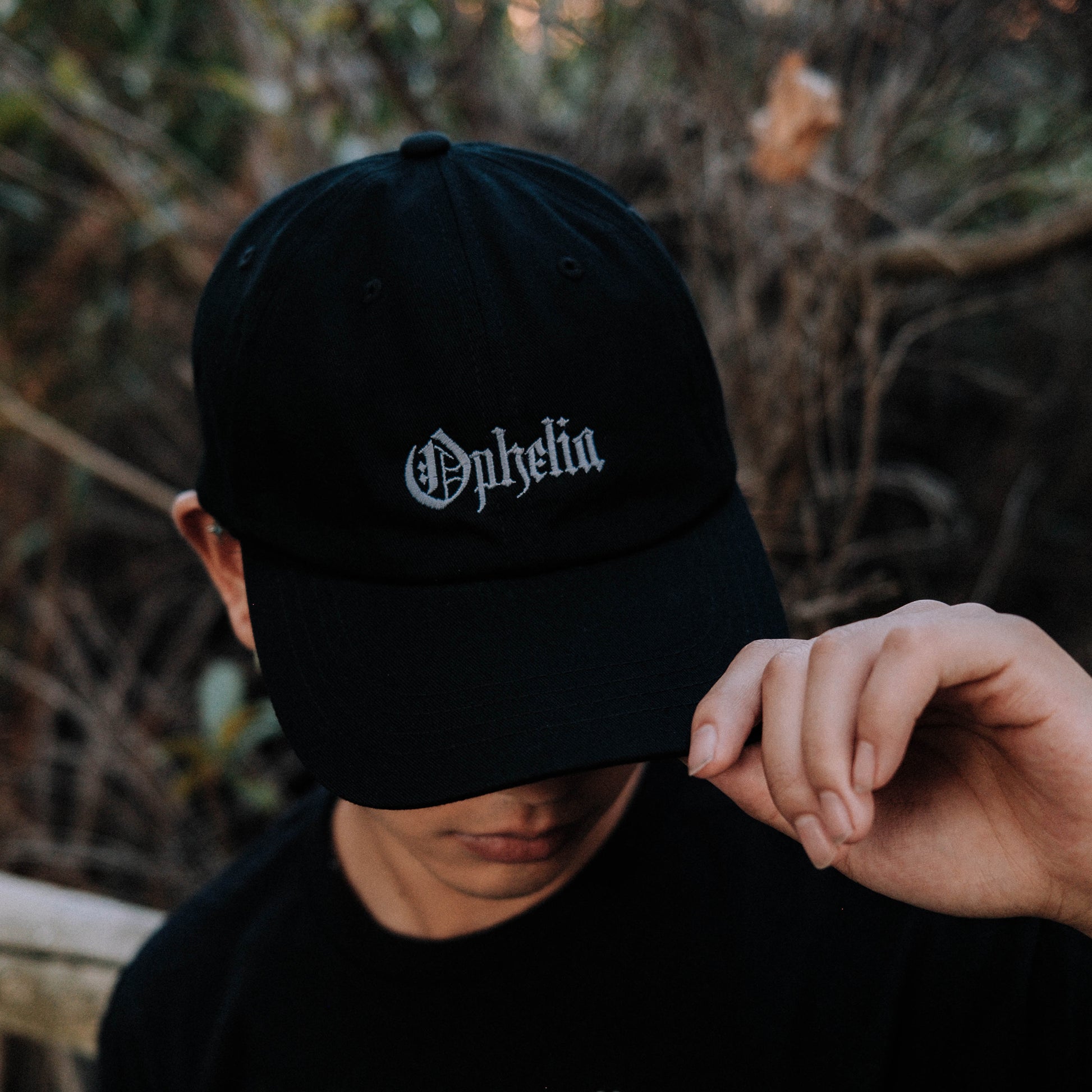 Ophelia dad hats feature an extra low profile and an antique brass buckle closure. Unstructured for classic, elegant style, with an embroidered front logo
